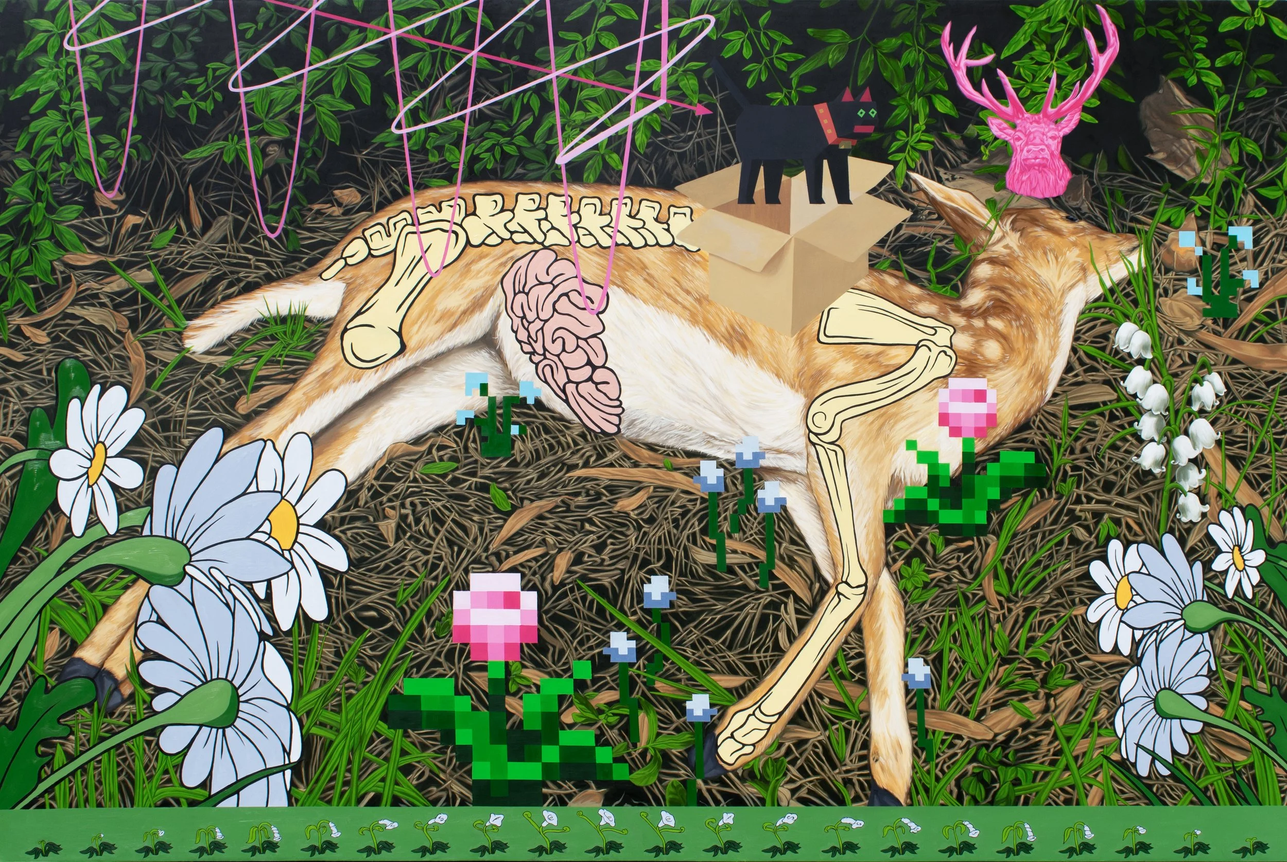 Nicholas Kalemba (M.F.A., University of Central Florida) is a lecturer of Studio Art Foundations and Drawing at the University of Central Florida. Specializing in Acrylic and Oil painting, he works as a Studio Painter and Muralist with his personal and commissioned work being exhibited Nationally in Public and Private Collections. His work has been exhibited in over 25 Group and Juried Exhibitions where he has won multiple awards and recognitions, including a Two-Year Residency at the Maitland Arts and History Center from 2019-2021. His work grapples with dualities and contradictions, and often utilizes the formats of Painted Photomontage, Collage or Social Realism to incorporate a wide array of iconography and imagery, while adding commentary through their juxtapositions."